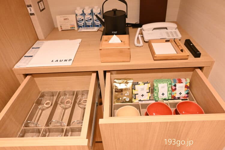 他にも靴ベラ、ブラシ、バス用ゴミ箱、ゴミ箱、ドライヤー置き、アメニティー入れBOX、ノートパッドホルダー、ティッシュケースは竹を使用。