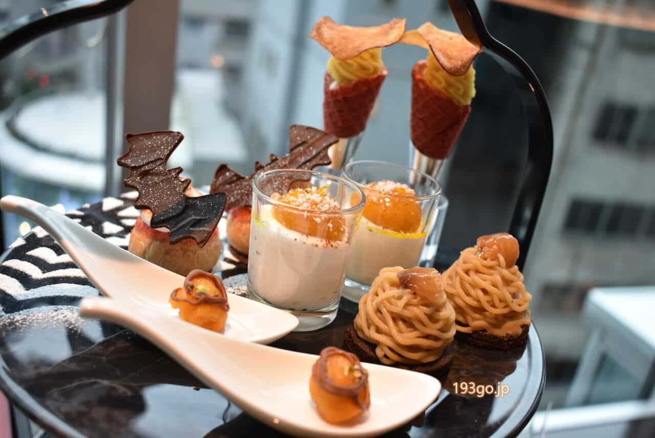 10月中はプレートがシュガーパウダーでクモの巣柄になってたり、プチシューにコウモリのチョコレートが付いてたりとハロウィン仕様に!