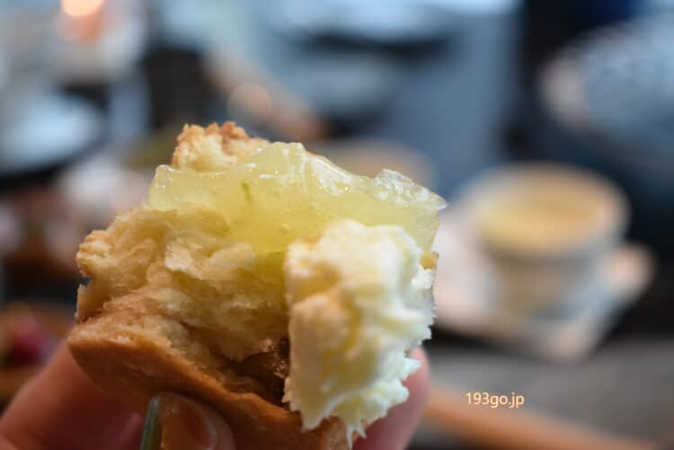 クロテッドクリームとりんごのジャムをたっぷり乗せて。