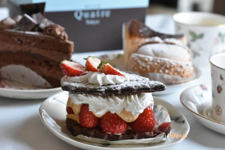 この中から、ミルフィーユと生チョコレートケーキ、バスクチーズケーキ、シュークリームをチョイス。