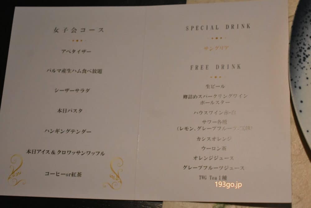 コース内容※「女子会」と記されてるけど、カップル、男同士、だれでも利用できる。