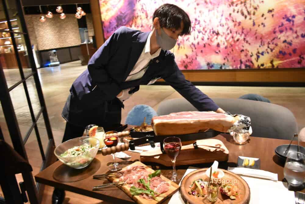 体験したのは生ハム食べ放題・ドリンク飲み放題付の2食付(夕朝食)宿泊プラン。