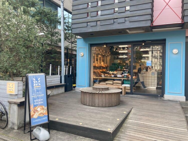 キャットストリート路地に水色のおしゃれパン屋