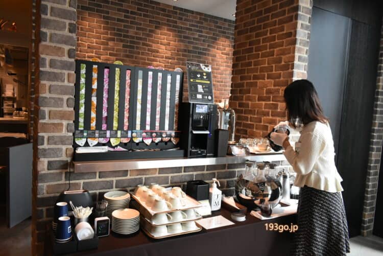 種類豊富なティーやコーヒー、フレッシュジュースのドリンクバーも嬉しい。