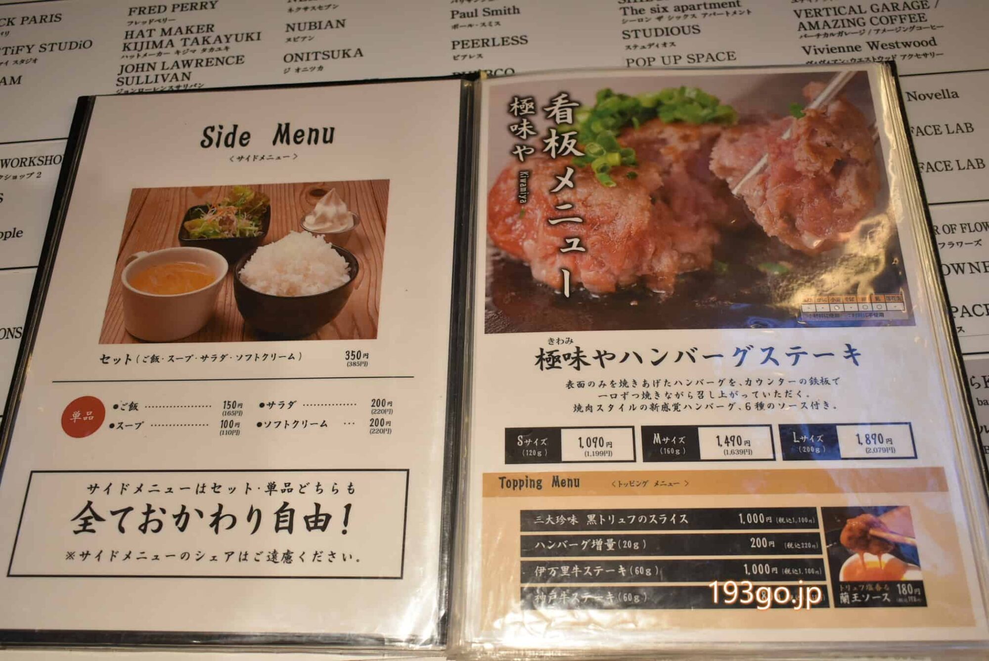 看板メニューの極味やハンバーグステーキのサイズを選ぶ!セットのスープやご飯はお替り自由
