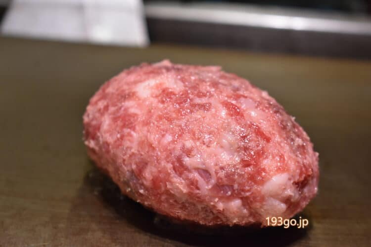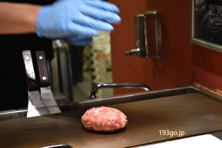 目の前でペチペチとハンバーグの形を整え鉄板の上に置かれる。