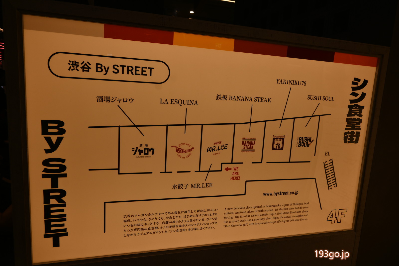 ・[4階]TSUTAYA BOOKSTORE、SHARE LOUNGE、酒場ジャロウ、ラ・エスキーナ SHIBUYA、⽔餃⼦ MR.LEE、鉄板 BANANA STEAK、焼⾁78(ナナハチ)、SUSHI SOUL、404 Kitchen、立ち飲みジューシー、熟成鮨 万〜離れ〜、Stand Phở You、Tipsy Tiger、中華可菜点心、プレフリトーキョー、STABLER SHIBUYA、BIG OYSTER KAIRI、Ciel Pizza、SHIBUYA BREWERY、404 Not Found、re-search