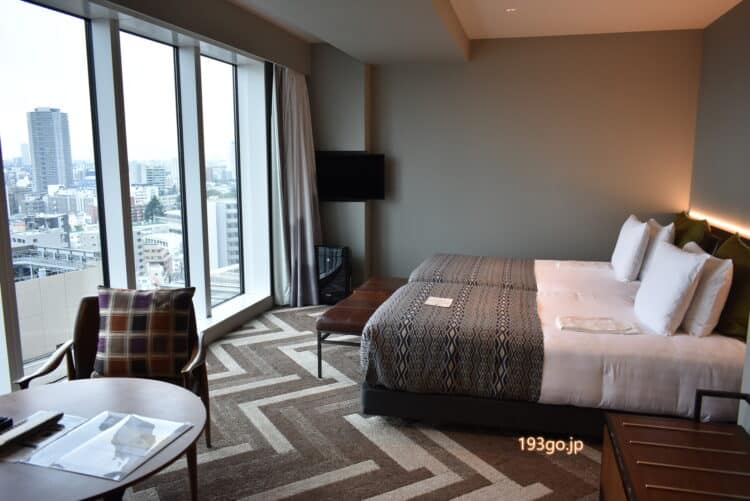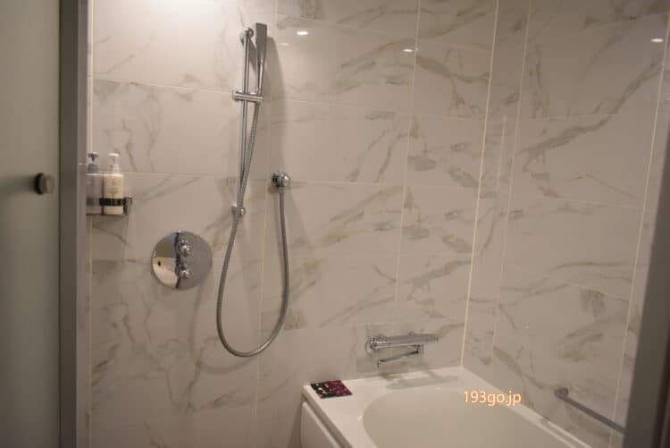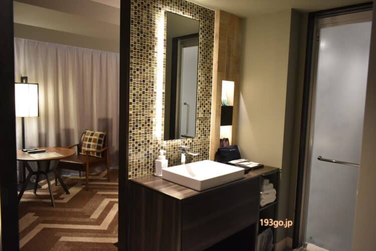 泊まった部屋は、36.4 ㎡のスーペリアツイン。扉を開けると、手前に洗面台、バス・トイレセパレートでバスタブ付き。