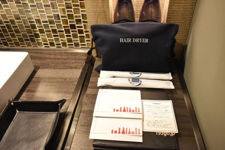 カミソリ、ヘアブラシ、ボディタオル、綿棒&コットンなどがゲットできる。足りないものは無かった。着替えだけ持ってお泊まり!
