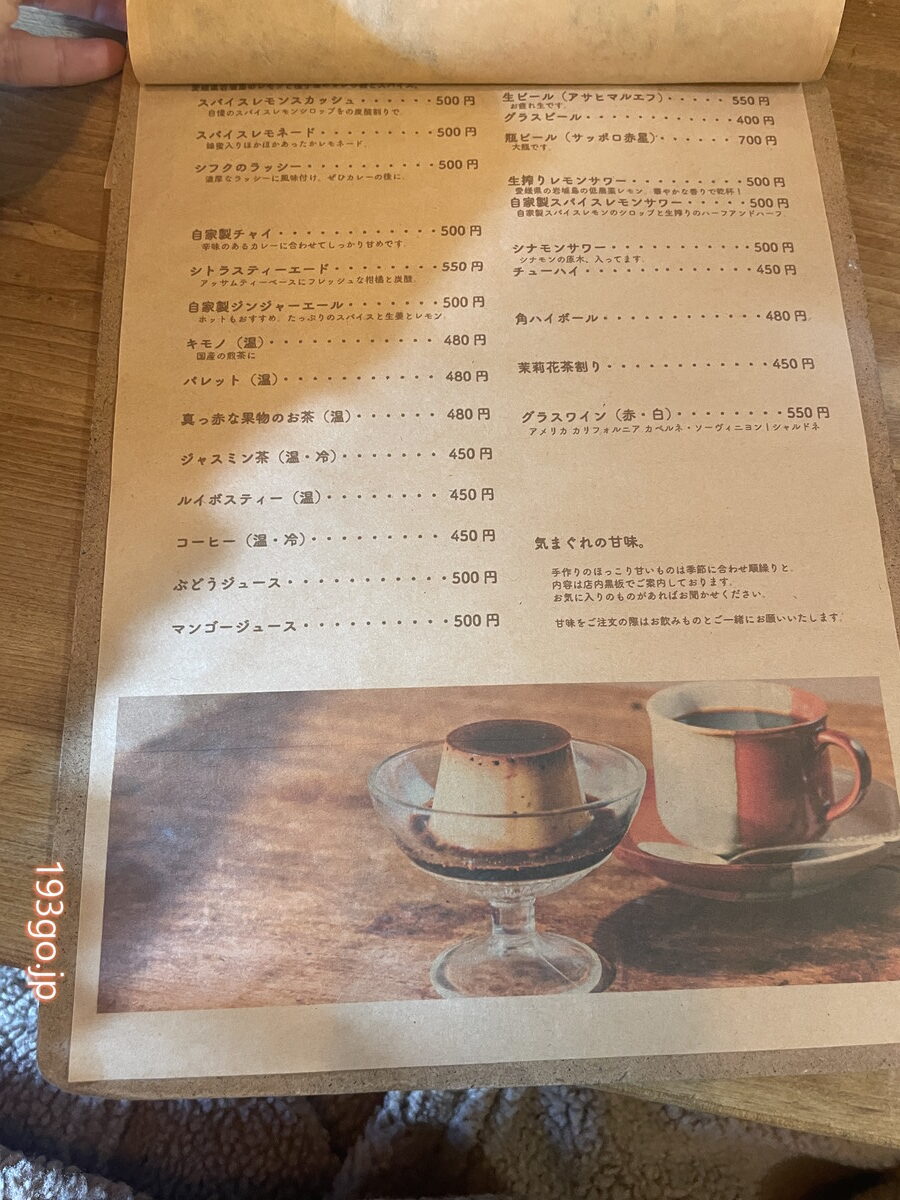 メニューはカレーや日替わり定食、自家製ドリンクにデザートも。