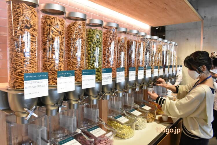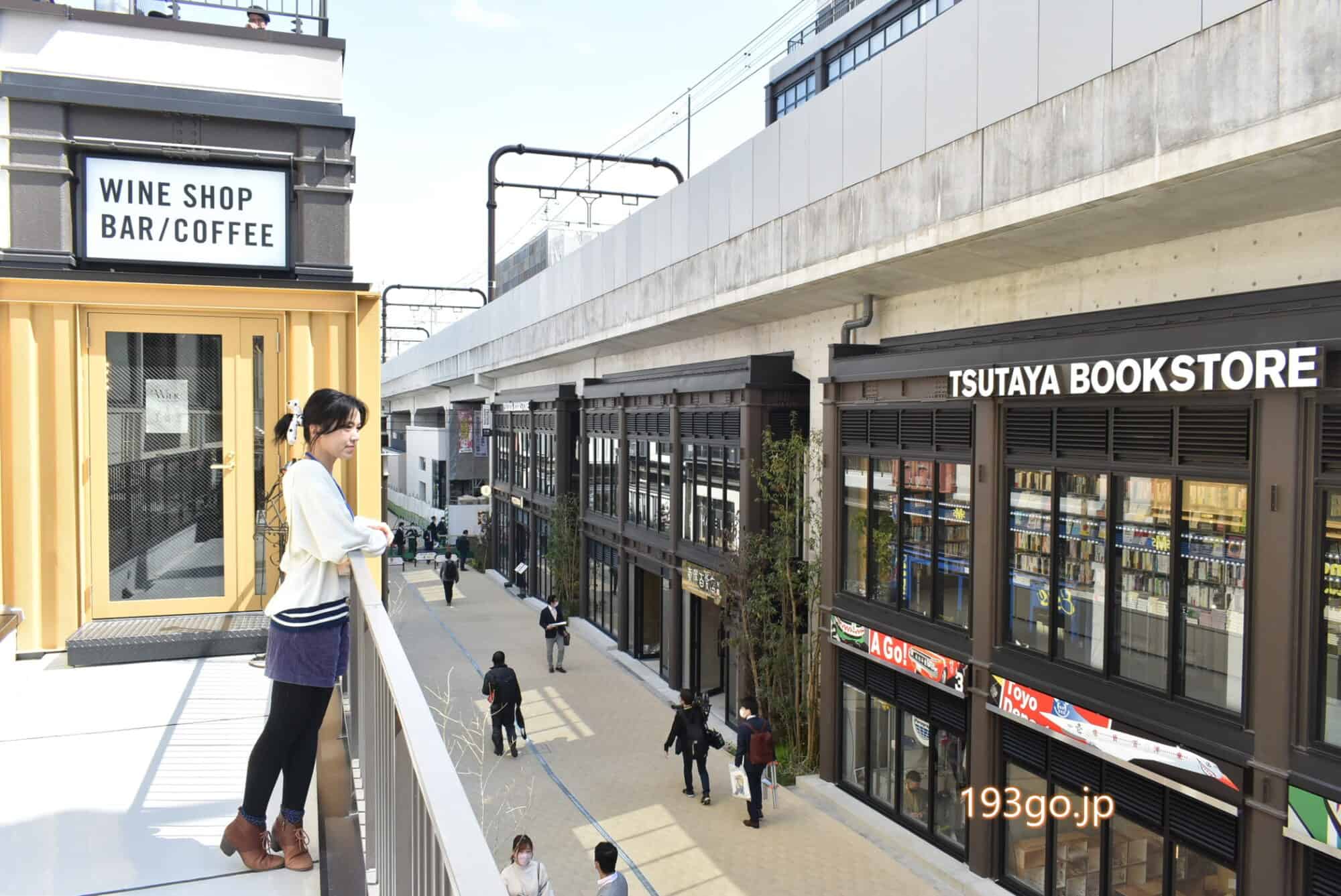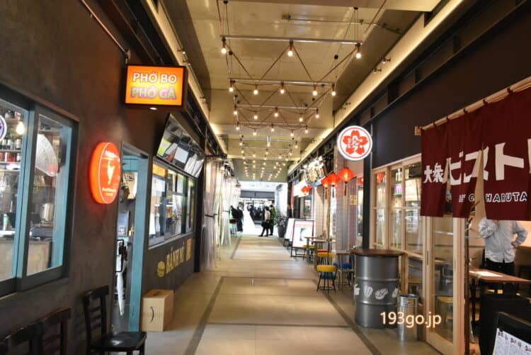 などの個性豊かなグルメが両脇に立ち並び、先まで進むとカフェラウンジ『TSUTAYA BOOKSTORE』が。