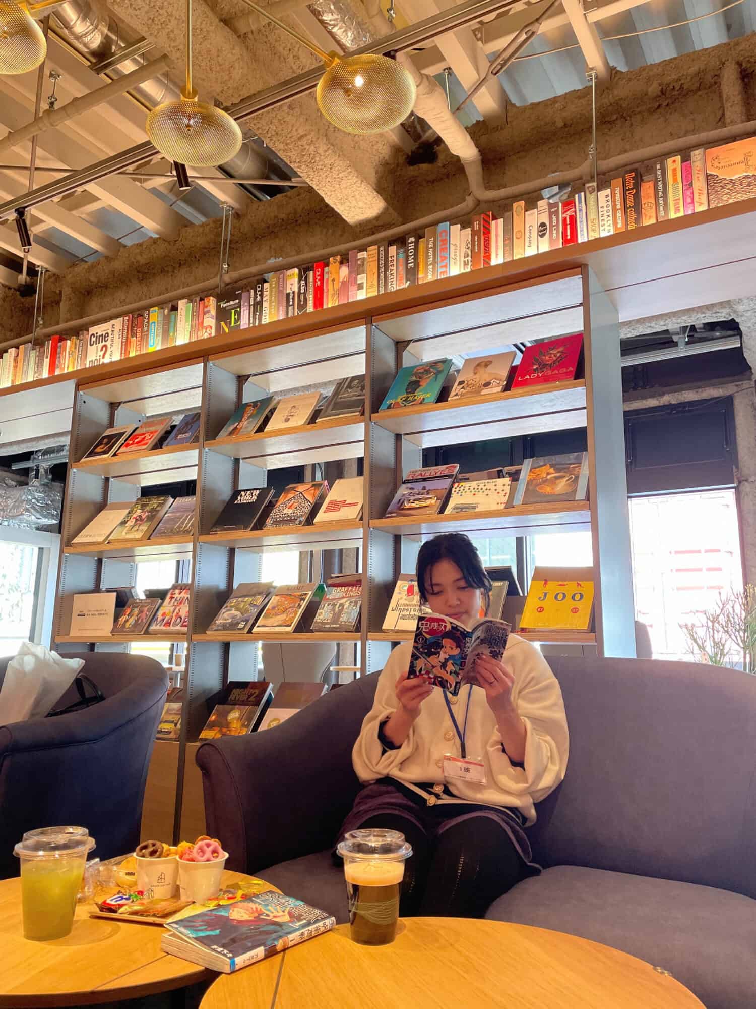 シェアラウンジ併設「TSUTAYA BOOKSTORE」広々くつろぎPC、読書。ドリンク&スナックバーも