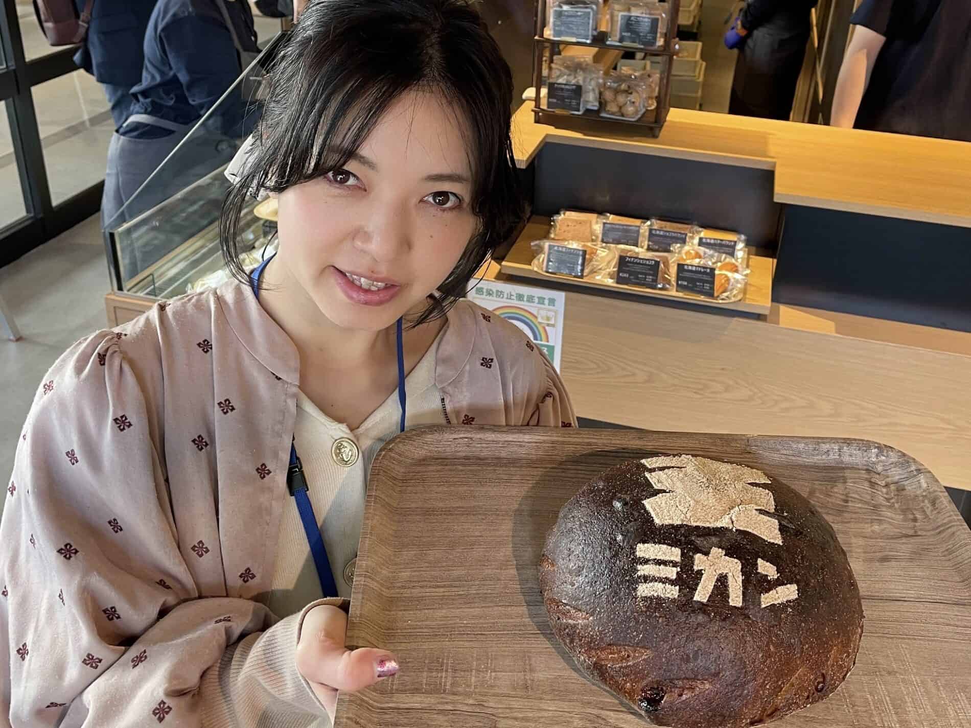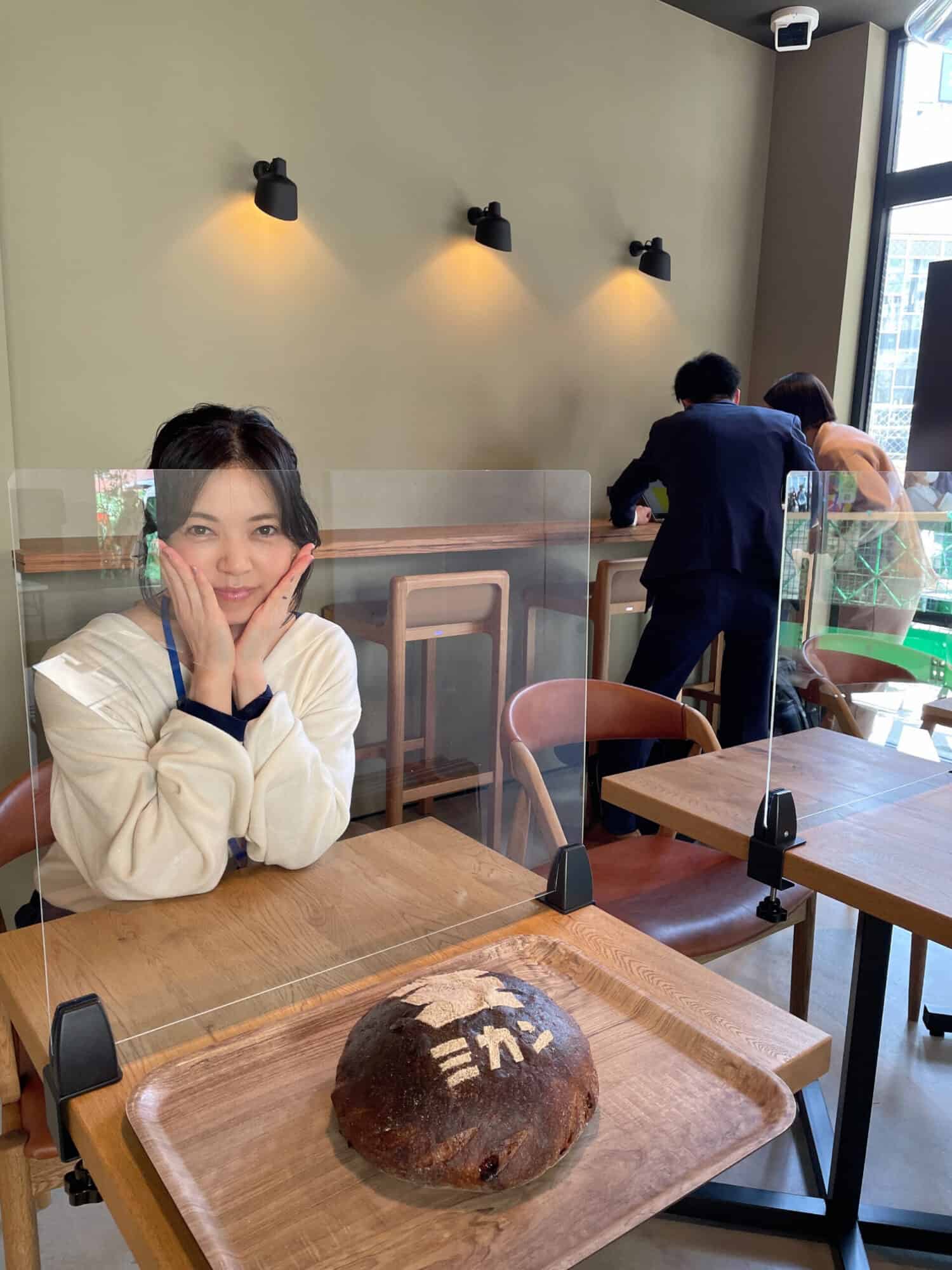 顔サイズのまん丸のカンパーニュに「ミカン下北」のロゴ入り。
