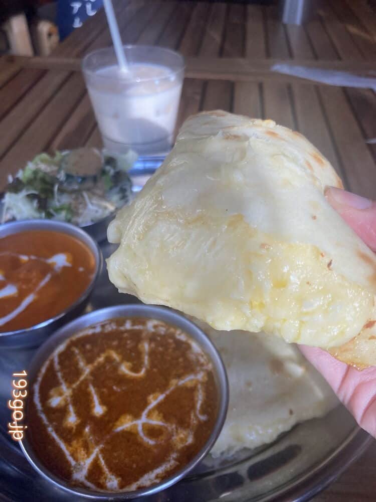 たっぷりもちもちハニーチーズナン!2種カレーとチャイも堪能