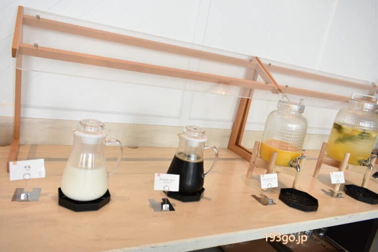 ドリンクバーにはコーヒー、紅茶、ジュース、牛乳。