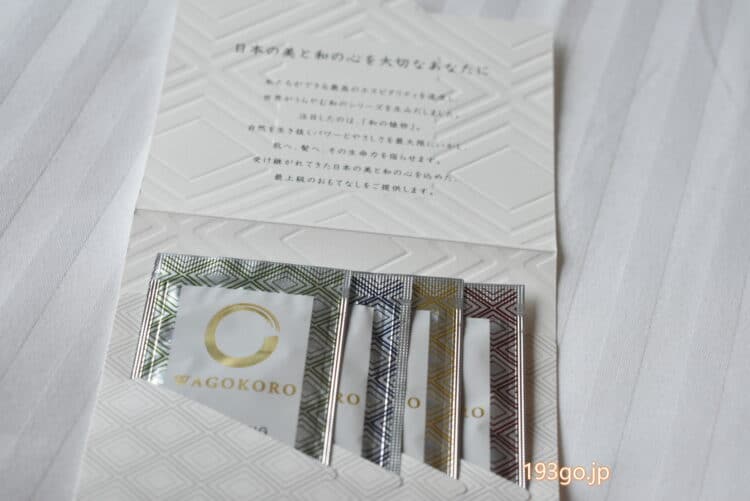 DHC「WAGOKORO」のスキンケア(使い切りタイプ)に、バスパウダー、ナノケアのドライヤー&ヘアアイロン、折り畳み式の大き目ミラーなど、あったら嬉しいものが揃う。