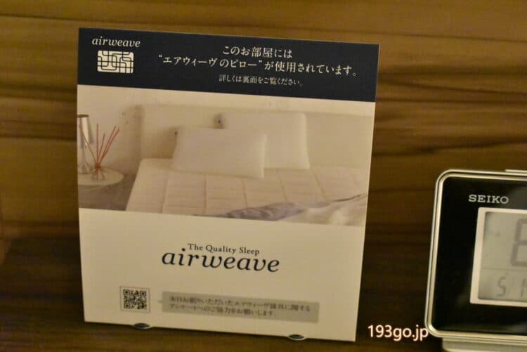 7階の2室だけ、airweave(エアウィーヴ)のマットレスとピロー(枕)が適用された部屋に。