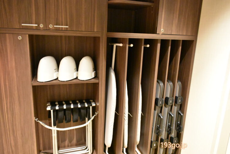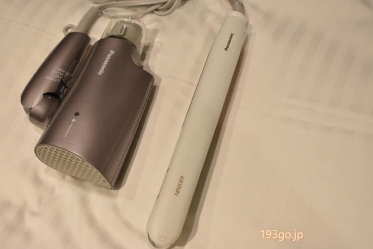 ヘアアイロンはフロントで貸し出し。衣類用のアイロンは、各階に貸出品コーナーがあり、そこからピックアップ。