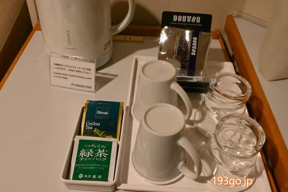 ダブルベッド、鏡台、32型液晶テレビ、フライトインフォメーション、電気ポット、冷蔵庫、加湿空気清浄機、消臭スプレー、スリッパ、ナイトウェア、ドライヤー