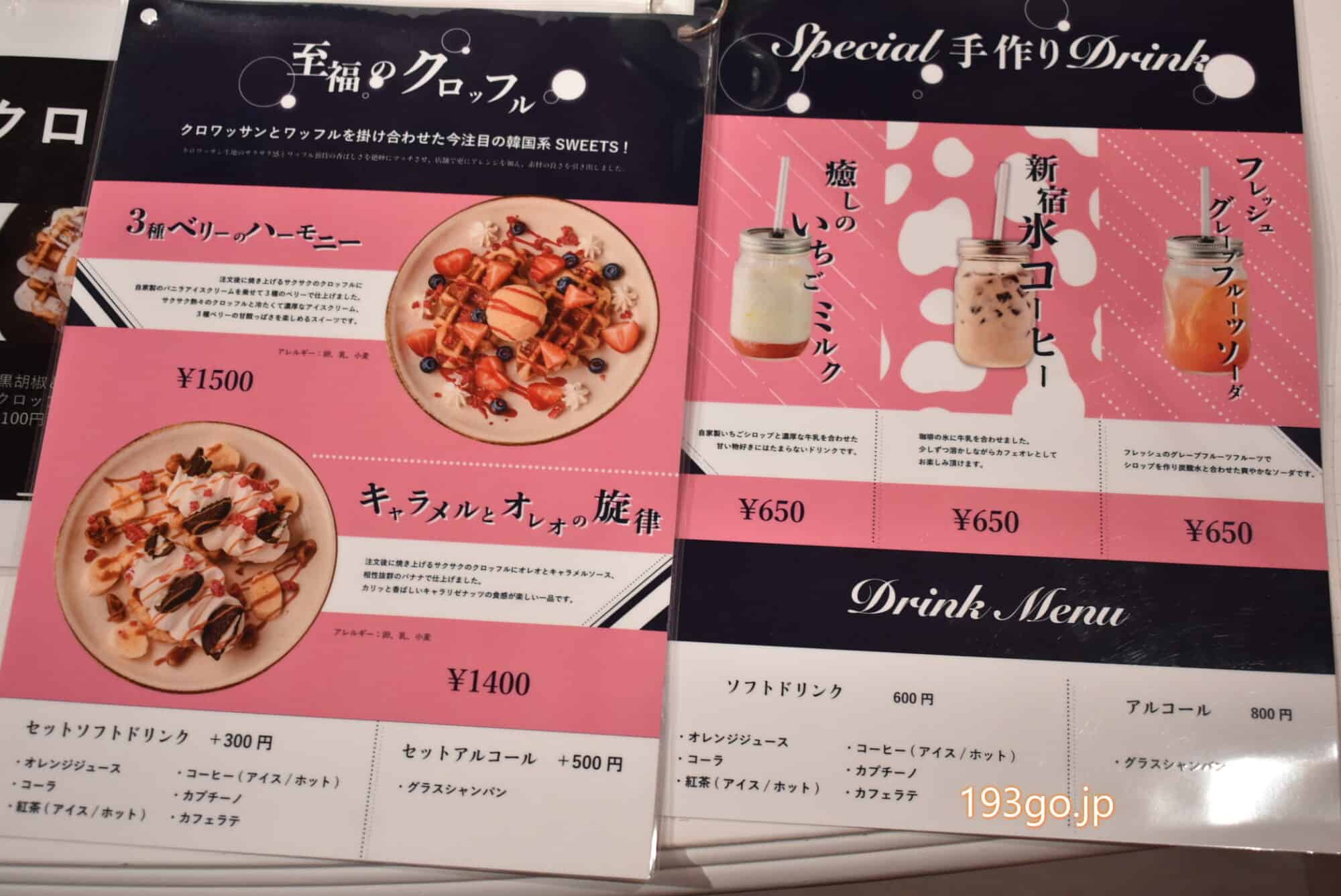 メニューは、近ごろ韓国で専門店も増えているという韓国スイーツ・クロッフル(クロワッサン×ワッフル)に、パフェ。