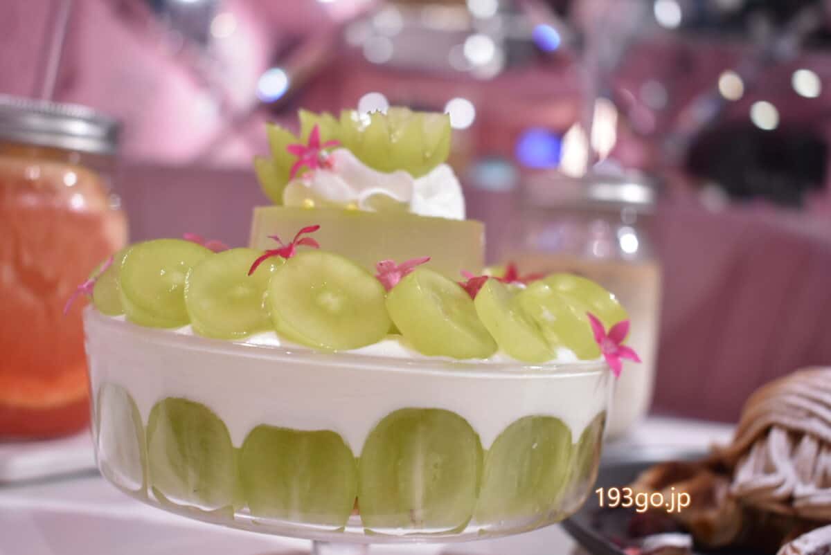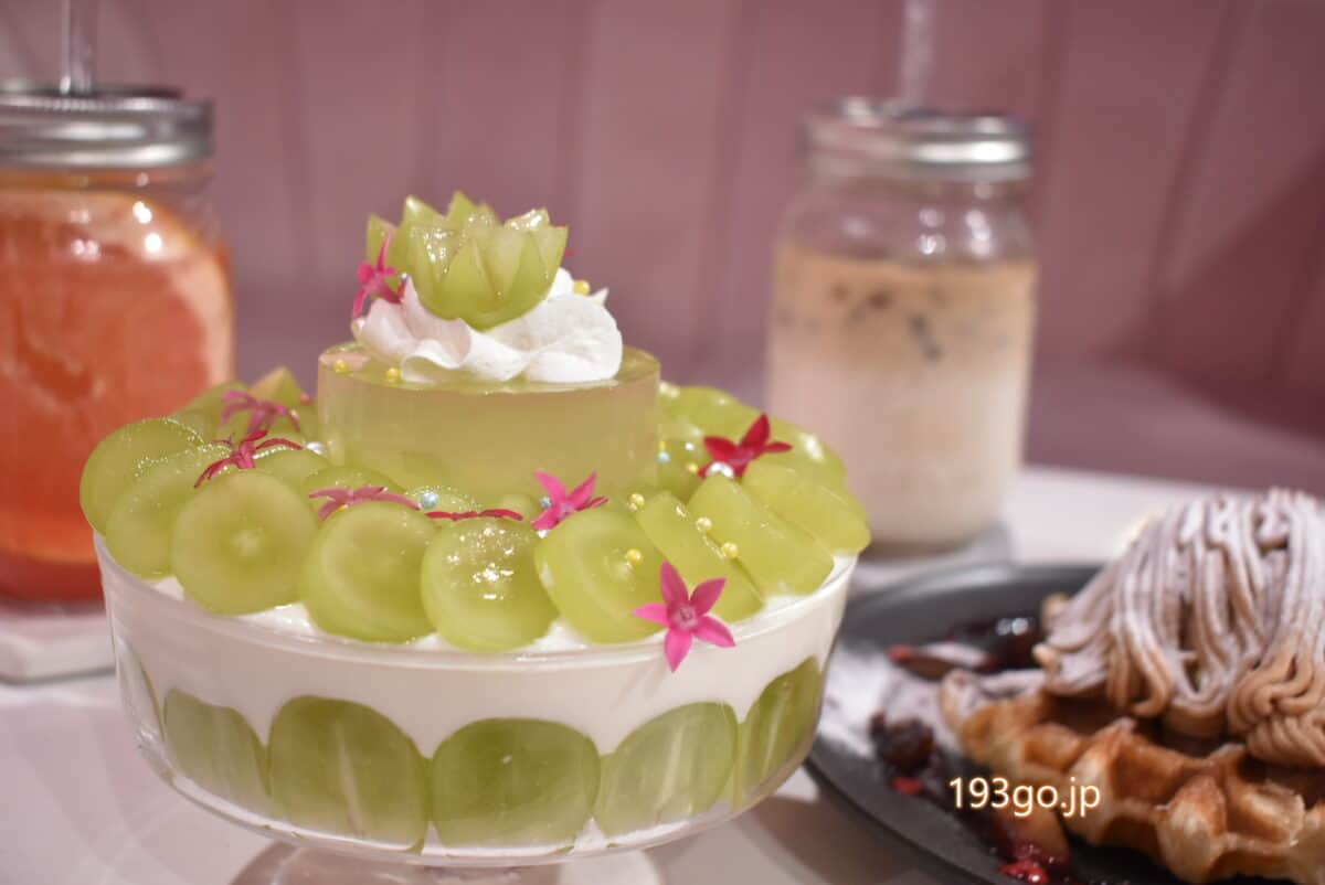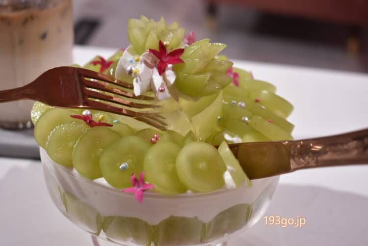 透明の器にキレイに敷き詰められたシャインマスカットの果肉。