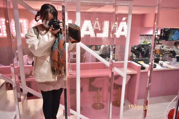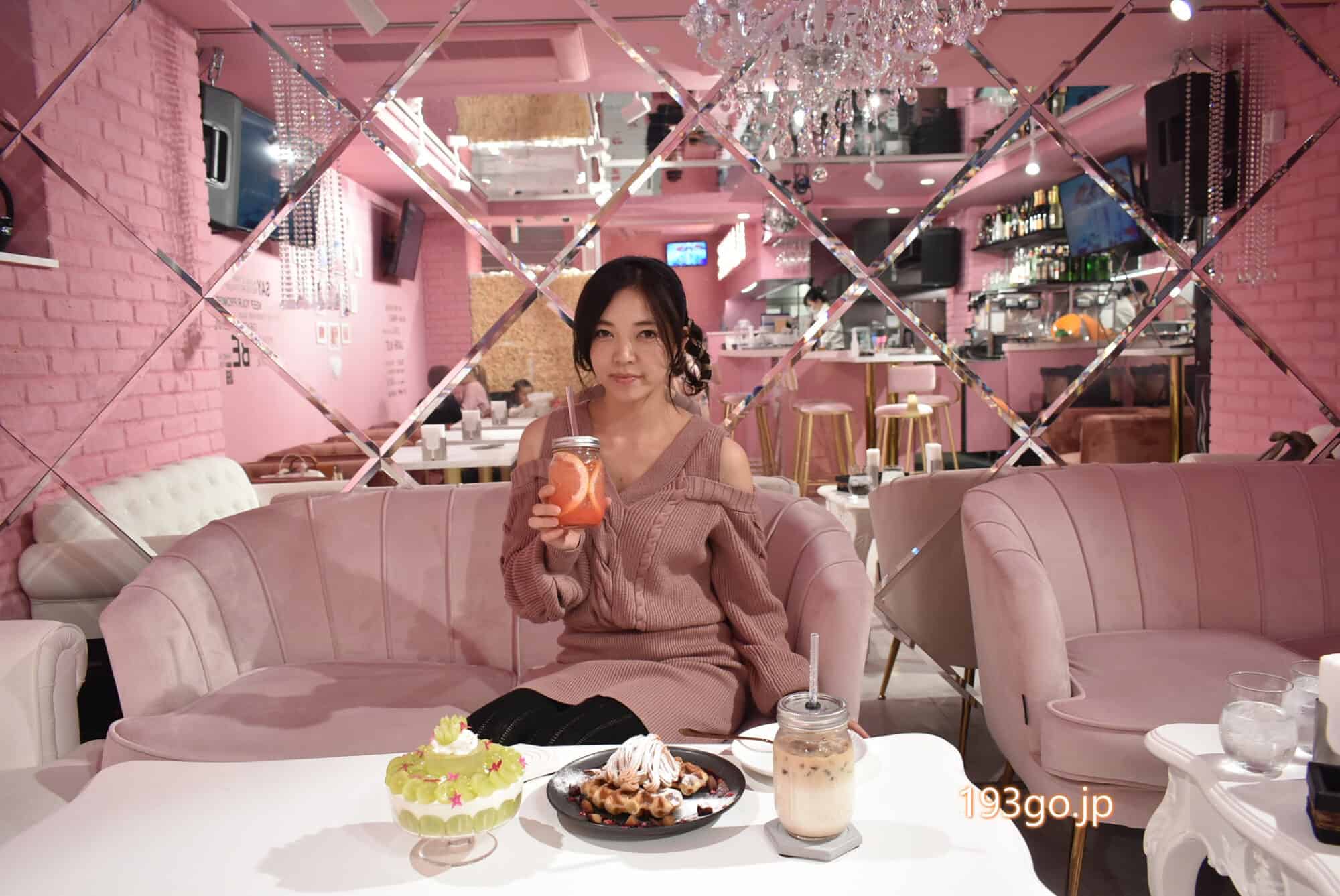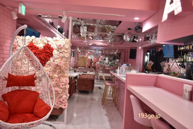 壁も天井もピンク、カウンター席、ソファー…見渡す限りピンクばかり。