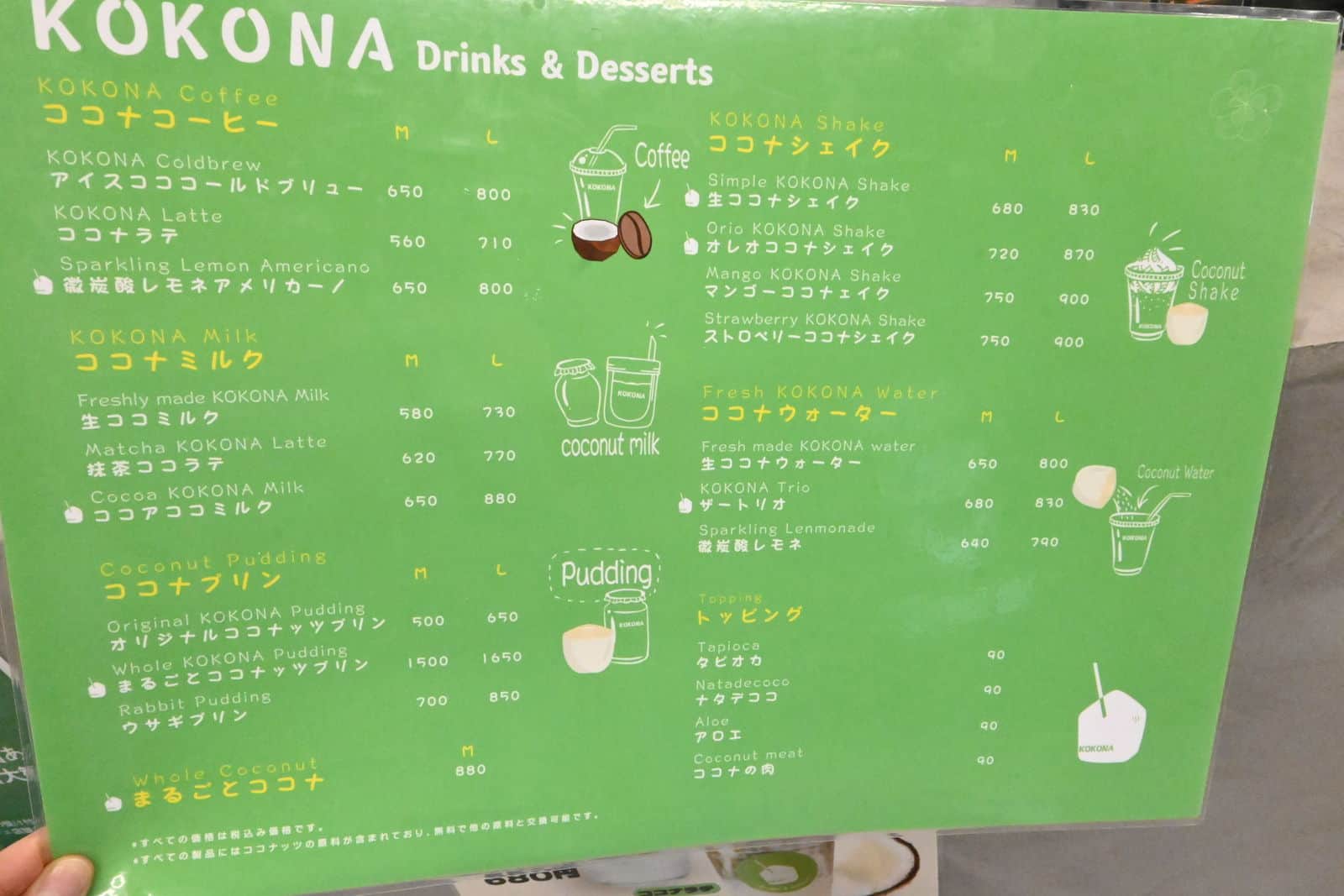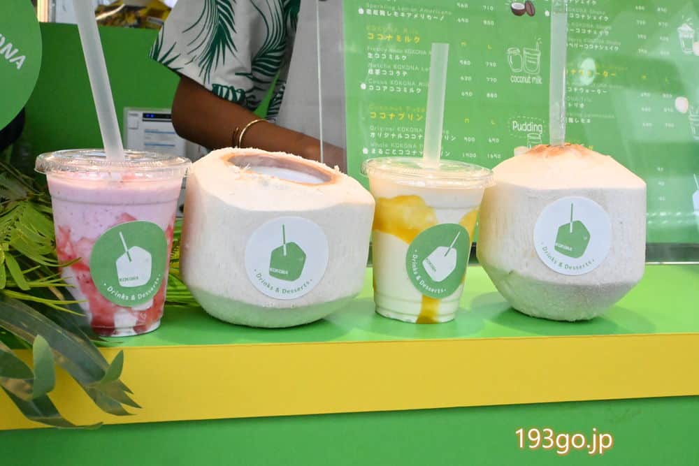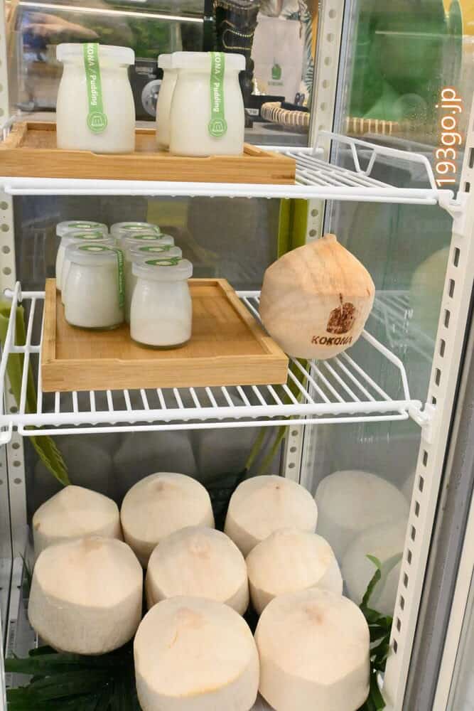 ココナプリン、ココナシェイク、ココナウォーターなどがあり、