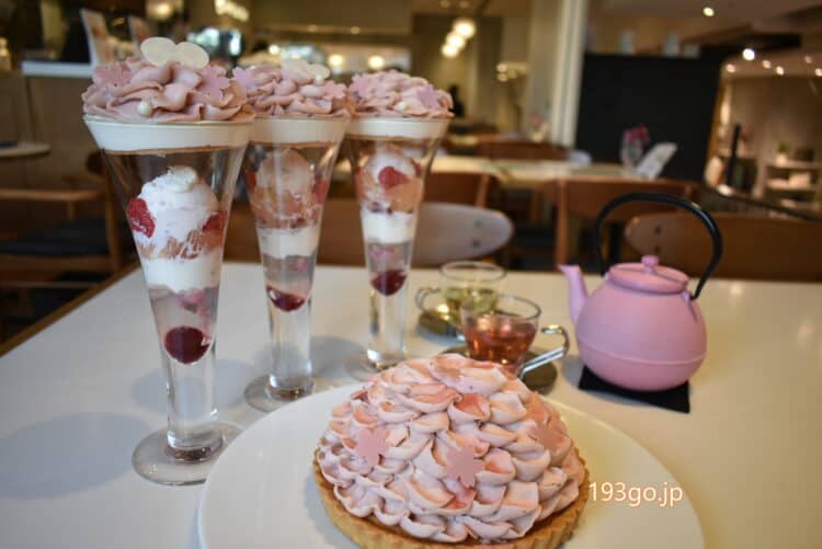 ニュウマンの中のおしゃれなティーサロンで季節限定 桜のスイーツ