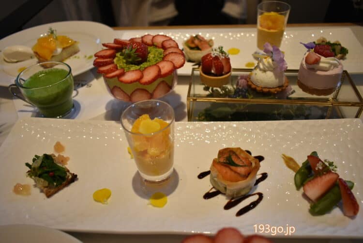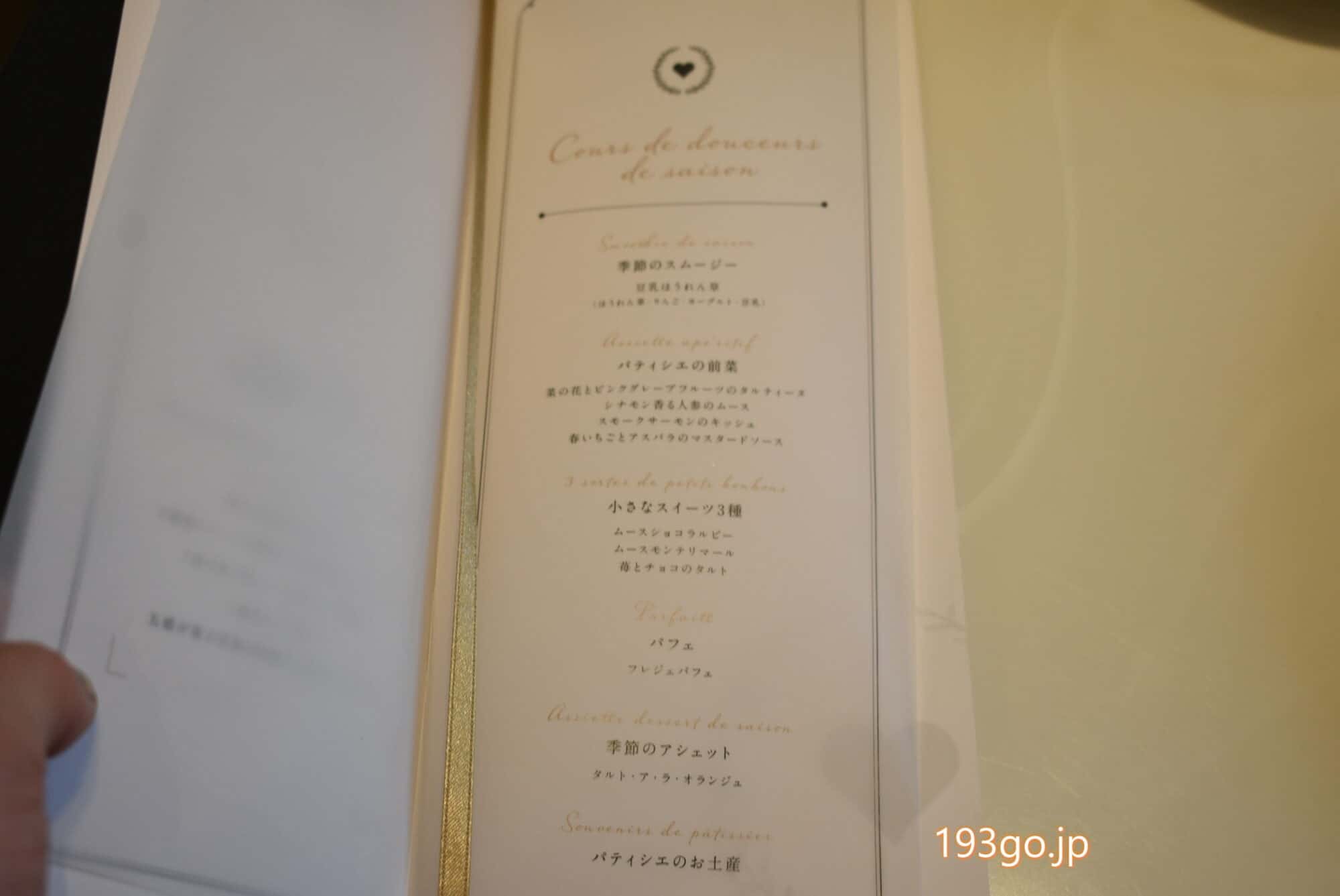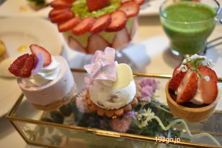 平日限定のプランで、季節のスムージーに、パティシエの前菜、小さなスイーツ3種、フレジェ風パフェ、季節のタルト、好きなドリンク1種類&お土産のお菓子付きで4,000円 (税込)