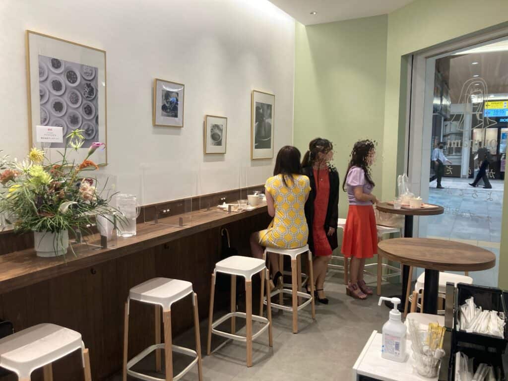 今回新しく登場した、からだがよろこぶスープのお店「oumâmi(ウーマミ)」では、テイクアウトとイートインが可能。店内は、カウンター5席と、ハイテーブル2卓。
