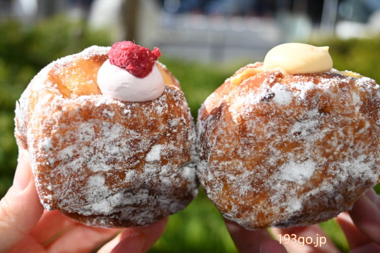 ウユ(ミルク)、きな粉シュガー、抹茶クリーム、ヌテラクリーム、オレオクリーム、ミックスベリ―、チョコミントなど15種ほど。1個418円~。