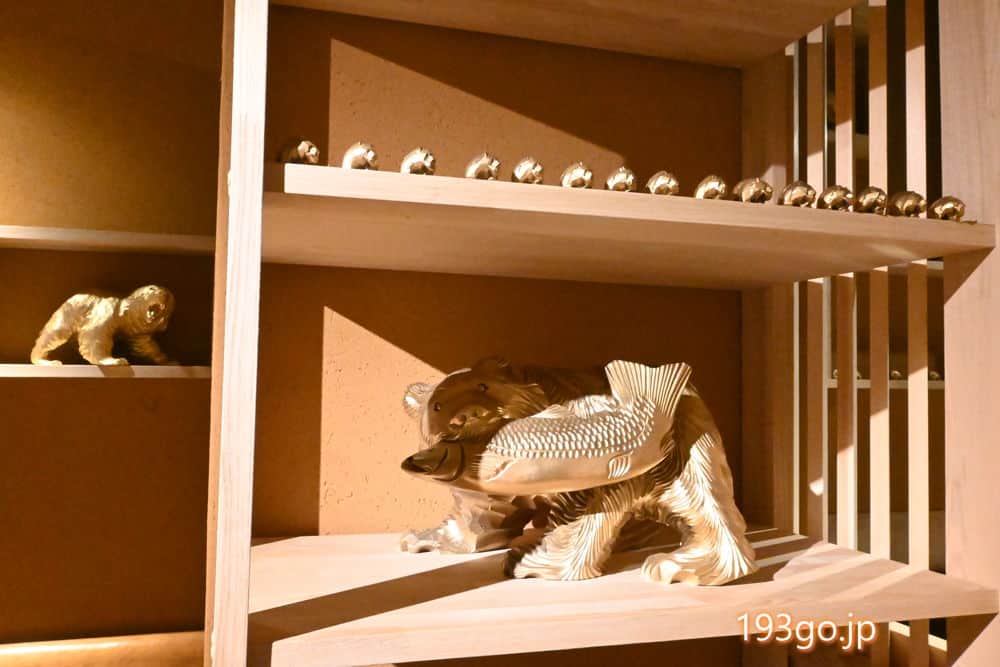 エレベーターで7階に上がると、ドドーン、いきなり大きな木彫りの熊がお出迎え。