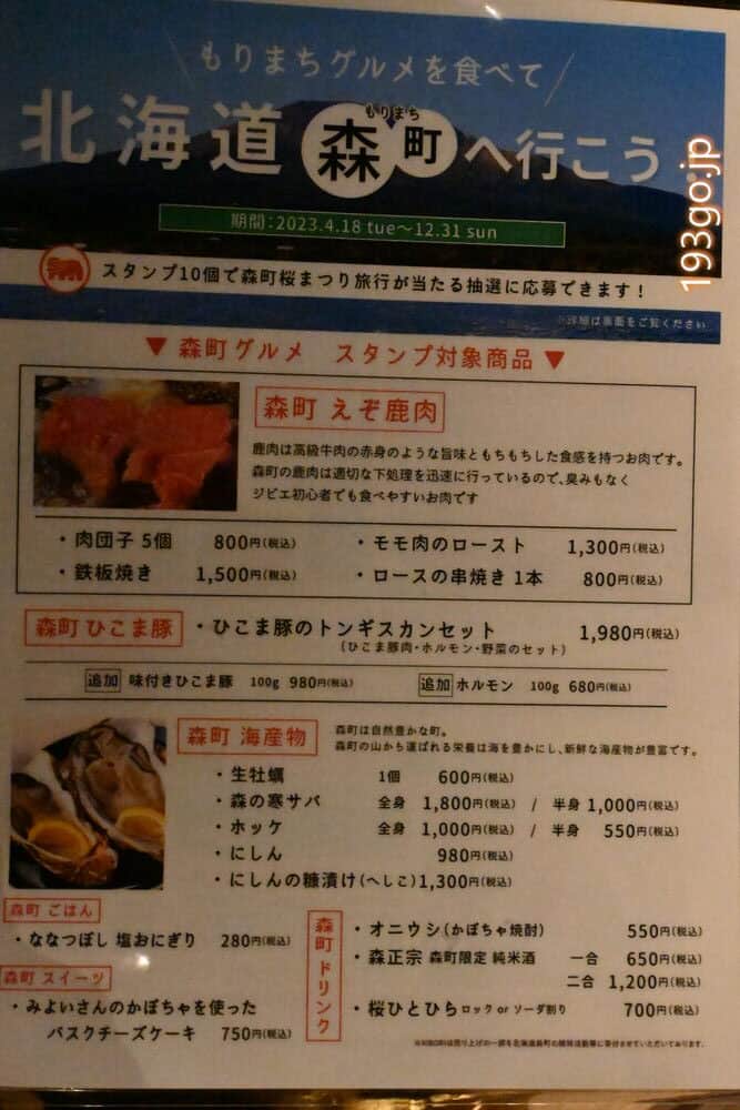 実施内容:期間中、『KIBORI』にて、森町のえぞ鹿の肉や食材を使った料理・ドリンク全15品を販売。さらに、「森町桜まつり2024」招待券などが抽選で当たる 「森町桜まつり2024」に行こう!スタンプラリーキャンペーンも同時開催。