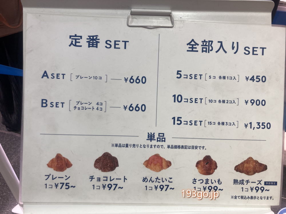ミニクロワッサンのメニューと値段(5フレーバー、一個75円~)