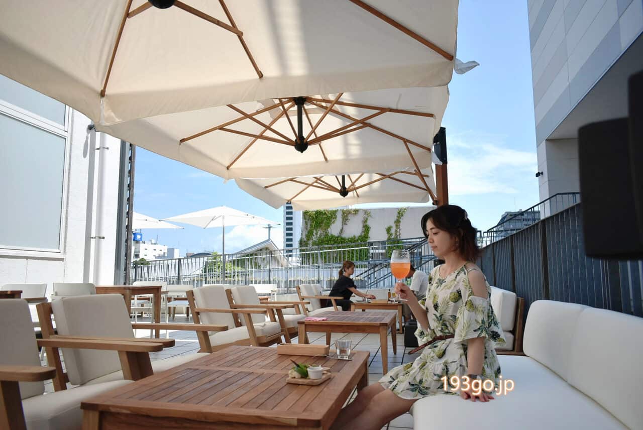 真っ白な大きなパラソルと青空が見え、湘南の潮風を浴びると、一気にリゾート感が上がる。