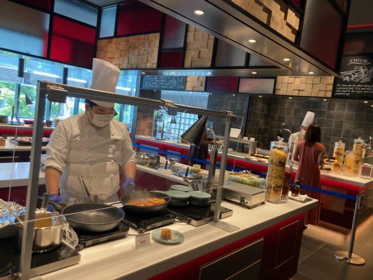 その他、シェフが目の前で作る出来立ての料理をよそってくれる。