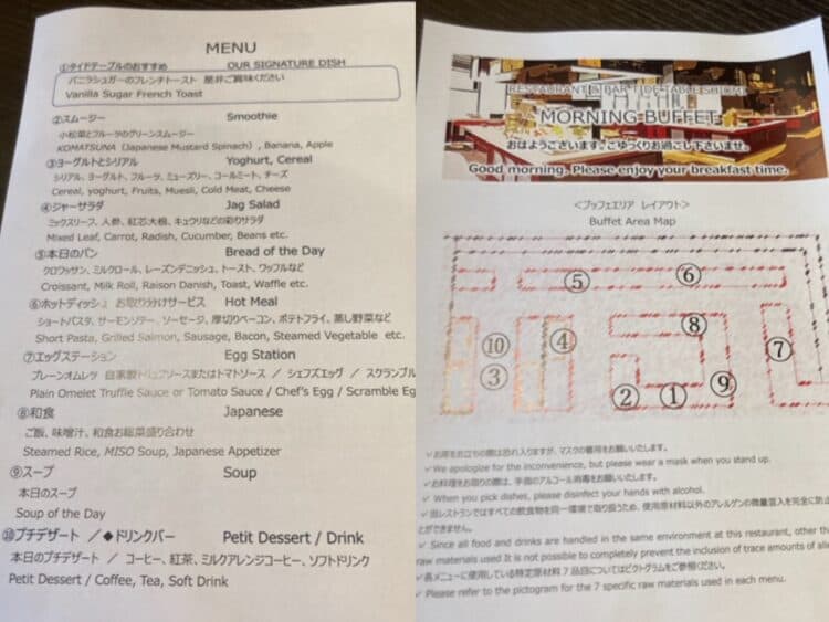 入口でメニューと簡単なマップ(どこに何があるか)の紙を渡される。
