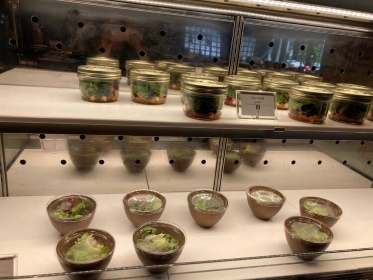 ビュッフェスタイルだけど、トングなどを使って大皿から料理を取るのではなく、一人分ずつ器に盛られてる。