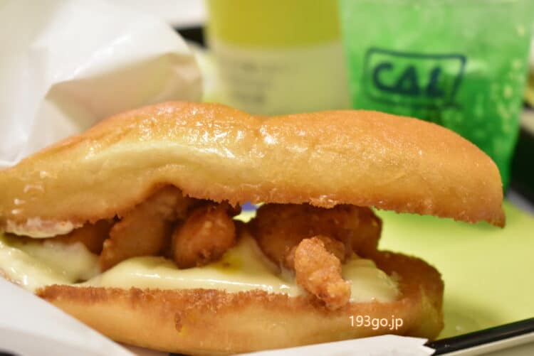 &揚げパンにナゲットがサンドされた揚げパンサンドを。