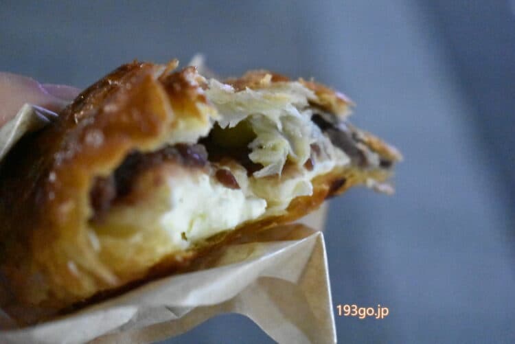温かいうちに、サクッ!中には、あんことクリームチーズ、バナナが入ってて、美味しかった。もう一個食べたいくらいだった。