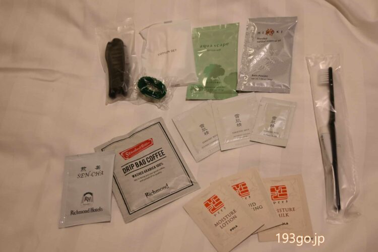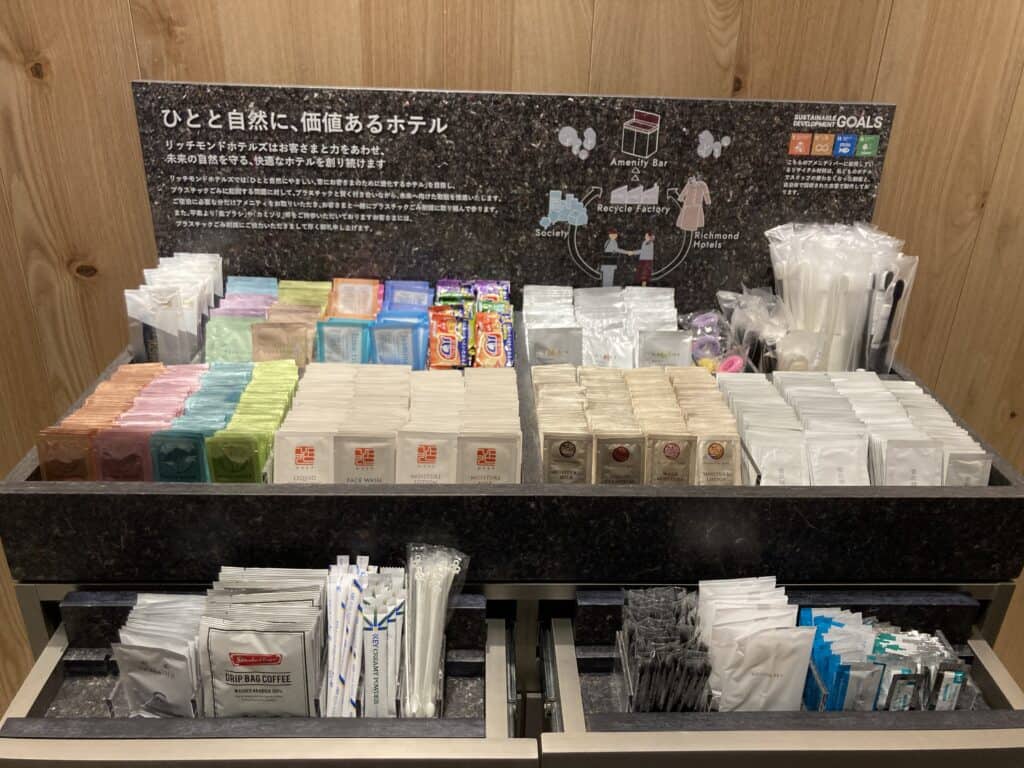 アメニティは、チェックインの際にフロントで必要なものをピックアップ。