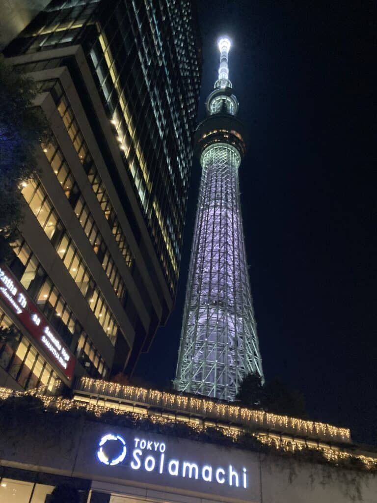 向かいのスカイツリーに散歩に行ったり、ライトアップを見たり、周辺グルメも堪能。