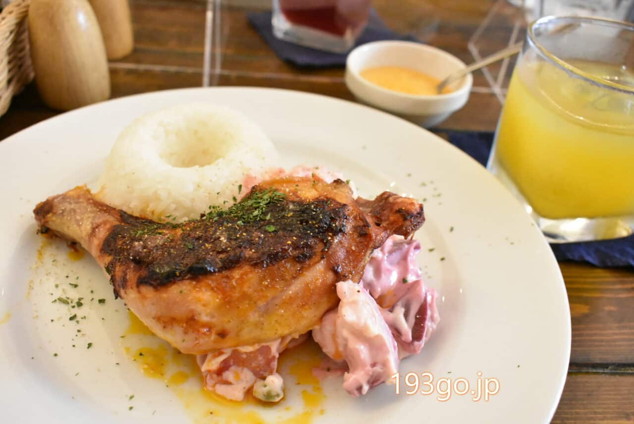 パリパリ皮の香ばしく焼かれたもも肉一本と
