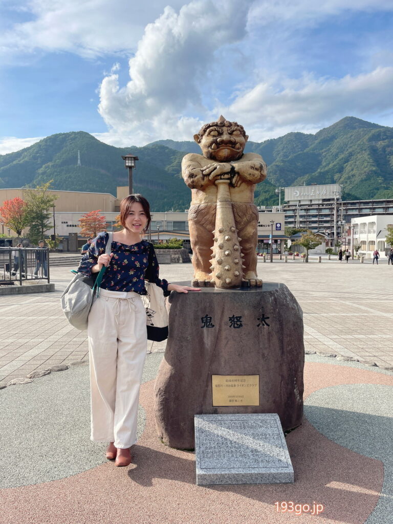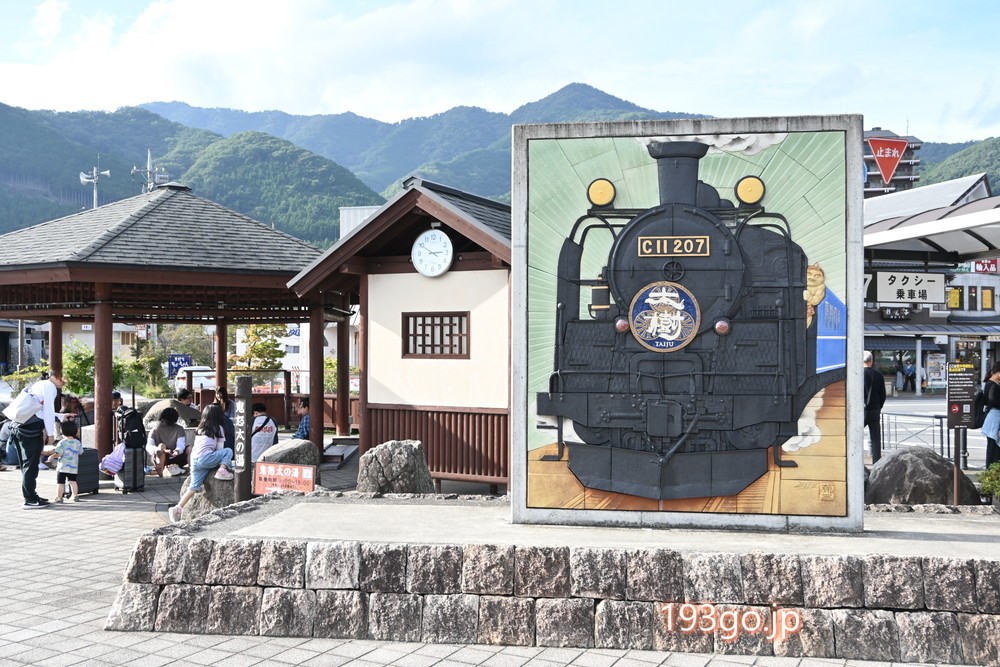 レトロで和モダンな駅。外に出ると、観光大使の方が写真を撮ってくれた。
