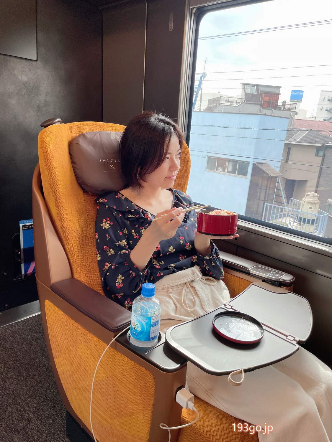 女子2人旅だったけど、お互いに一人がけのシートでゆったりと。
