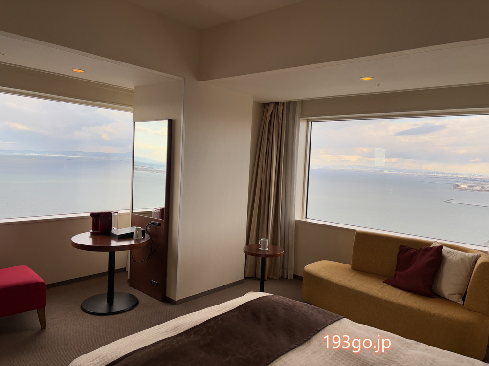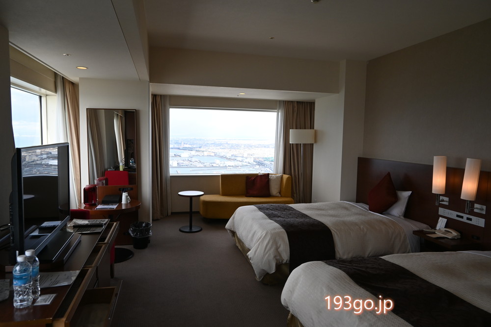 今回泊まったのは48階の「プレミアデラックスコーナーツイン エアポートビュー」