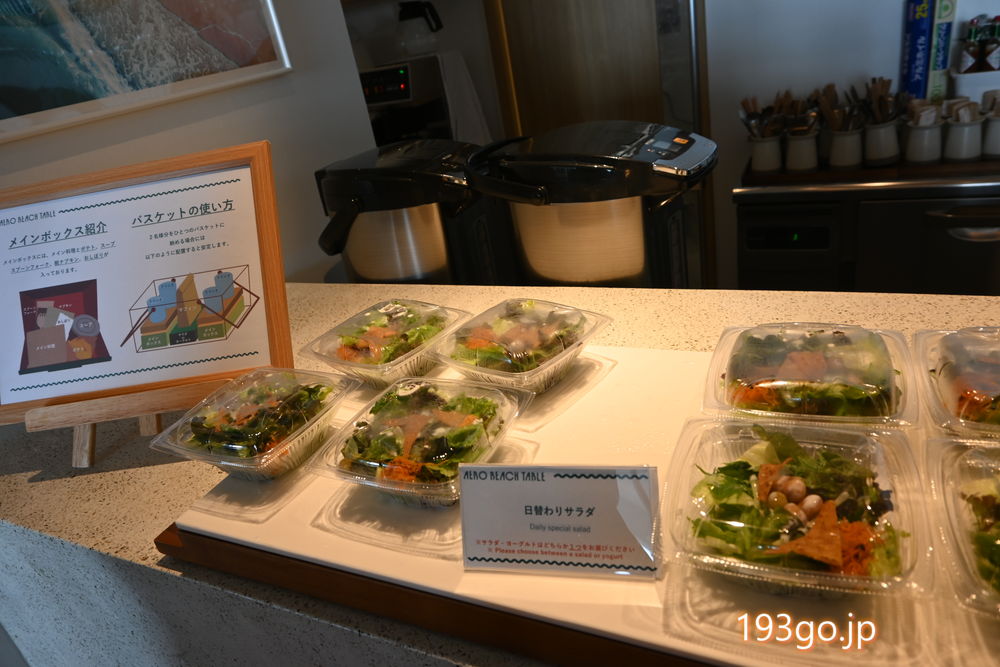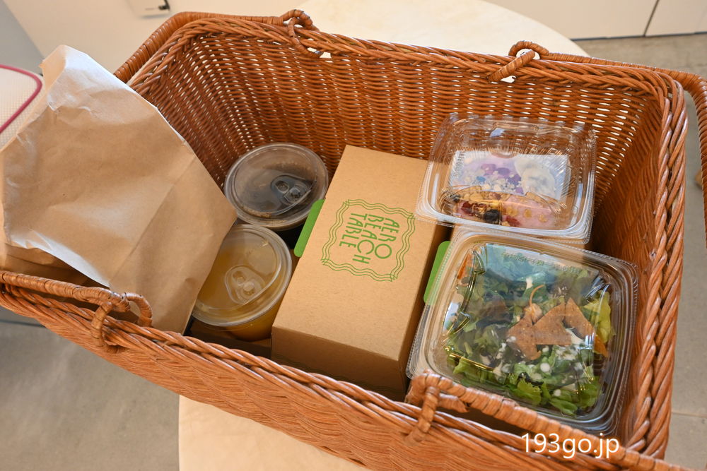 客室に用意されたバスケットを持って行き、サンドイッチやマフィン、サラダ、グラノーラボウル、スープ、ドリンクなどをピックアップして、バスケットに詰め込みお部屋やビーチ、プールサイドなど好きな場所で楽しむピクニックスタイル。