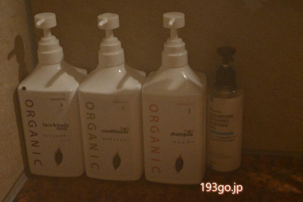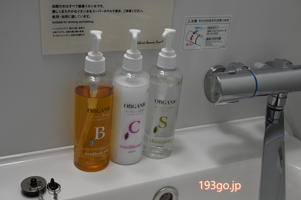 歯ブラシは客室に、大浴場にはクレンジング、フェイス用の保湿ジェル、ヘアクリーム、バスアイテムなどが一式。