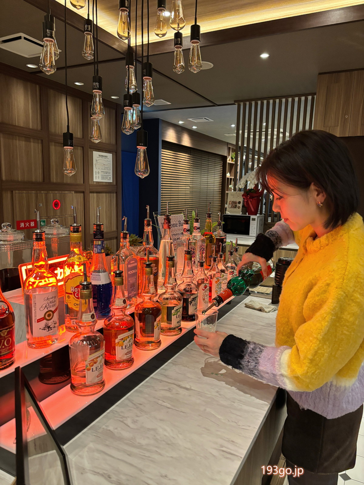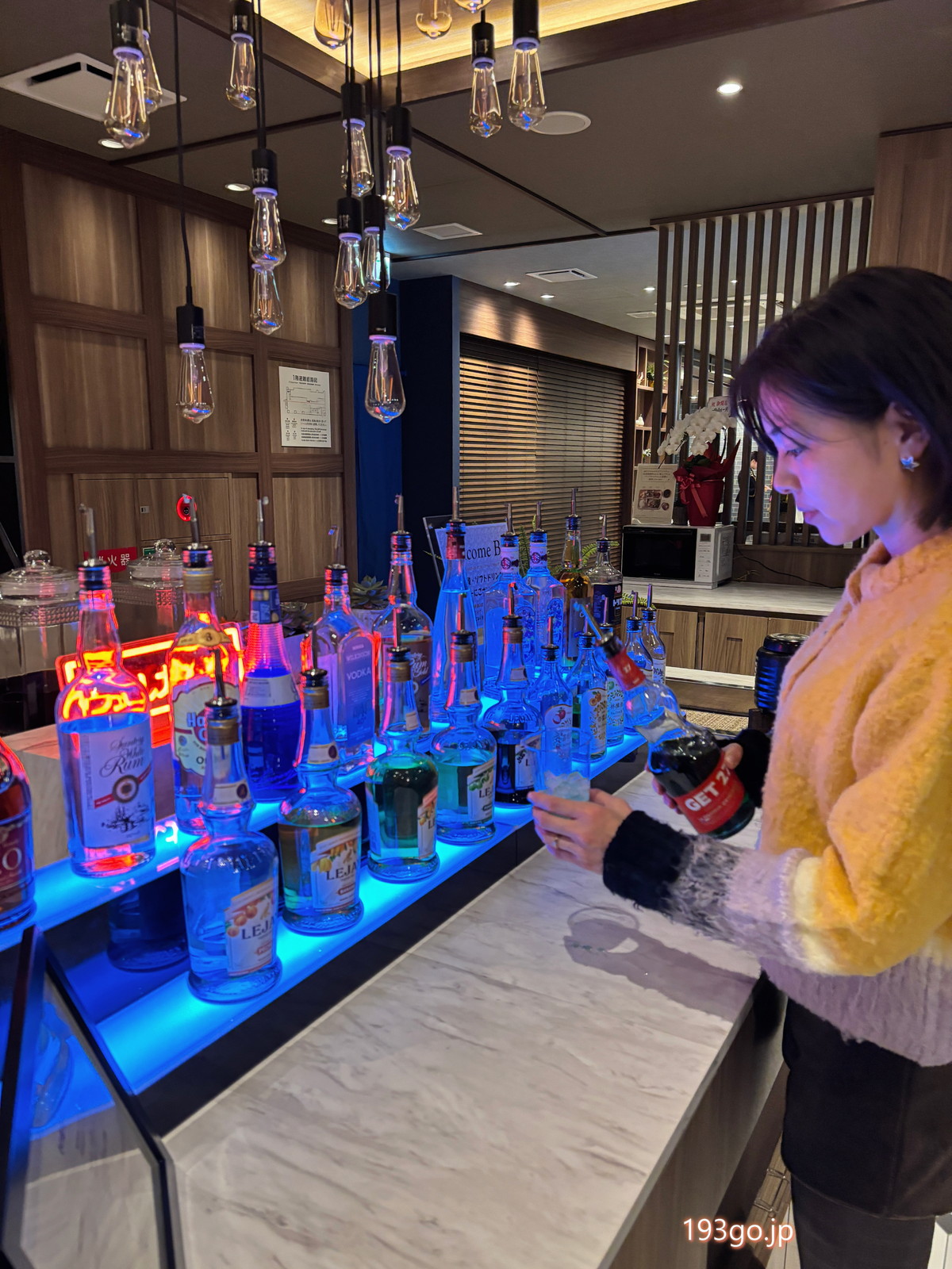 17時~21時までの「ウェルカムバー」には、様々なリキュールが並び、カクテル作りが楽しめる。