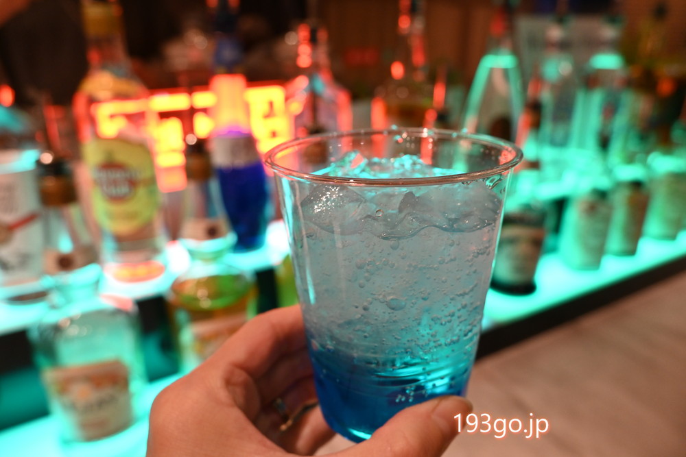 外が暗くなった頃、照明のトーンが落ち、本格的音響のBGMが流れる中、カラフルなカクテルを片手にまったり。